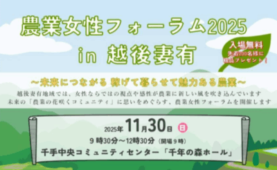 「農業女性フォーラム2025in越後妻有」が11月30日(日)に千手中央コミュニティセンターで開催されます。 農業女性フ…