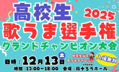 高校生歌うま選手権グランドチャンピオン大会が13日(土)に越後妻有文化ホール段十ろうで開催されます。 高校生歌うま選手権…
