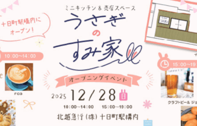 北越急行株式会社が、十日町駅構内にミニキッチンと売店スペース融合した店舗「うさぎのすみ家」のオープニングイベントを12月…