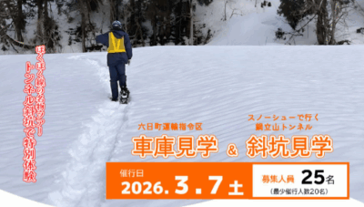 六日町運輸指令区車庫&スノーシューで行く鍋立山トンネル斜坑」3/7開催