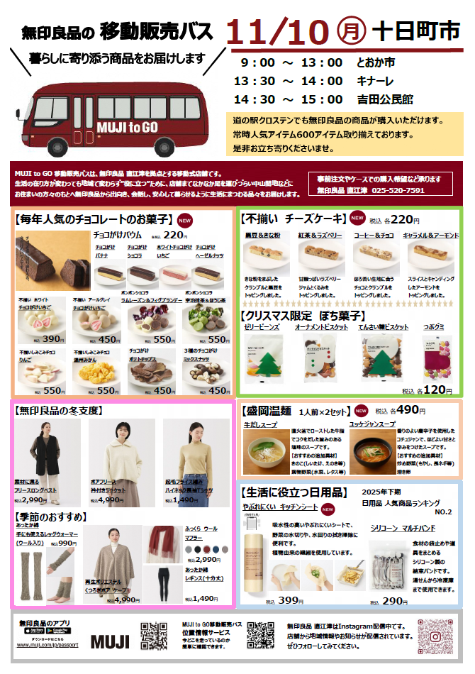 無印良品の移動販売バス[MUJI to GO]が、十日町市内にやってきます。
