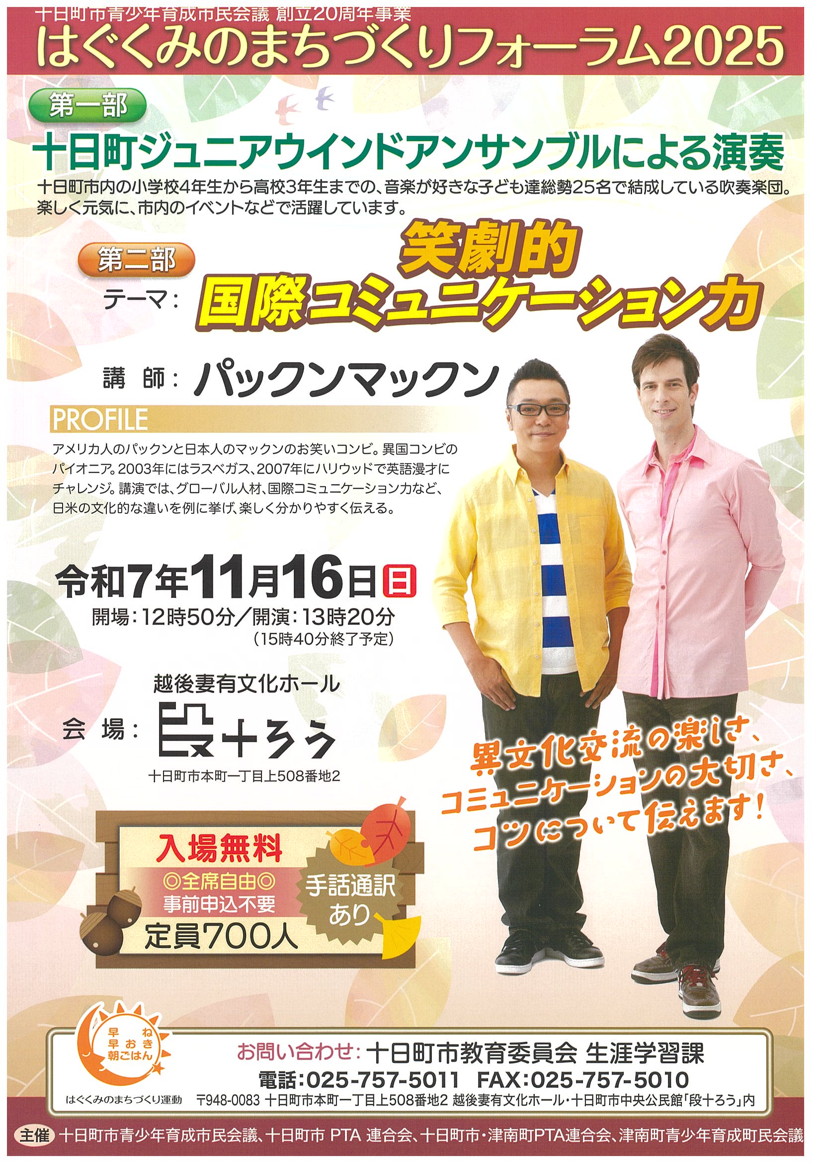 ■問い合わせ:中央公民館(段十ろう)TEL025-757-5011