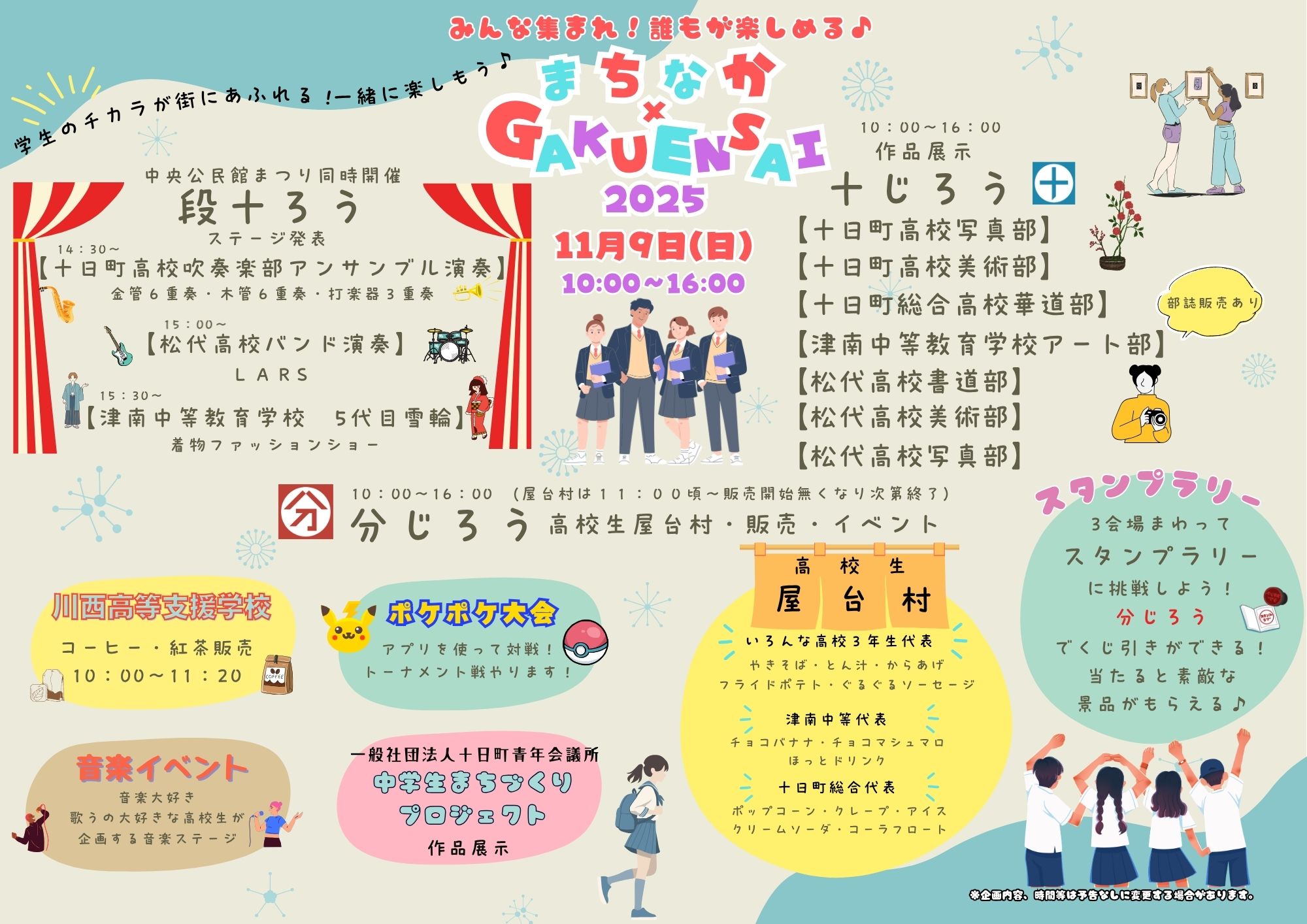 ■内容:作品展示、飲食販売、ステージ発表14:30~