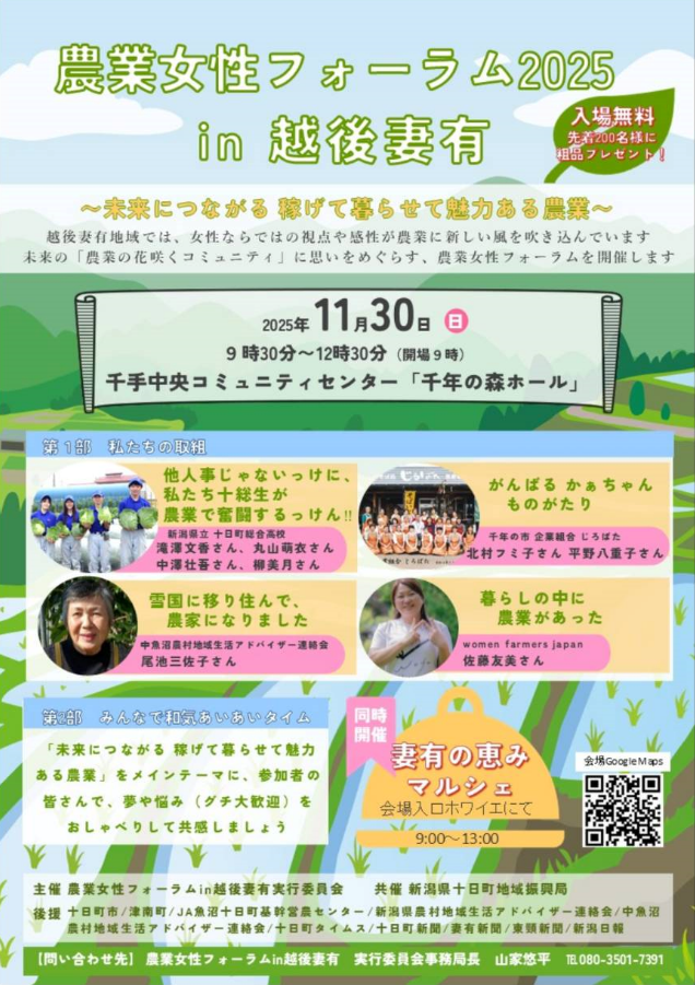 ■問い合わせ:農業女性フォーラム2025in越後妻有実行委員会 TEL080-3501-7391
