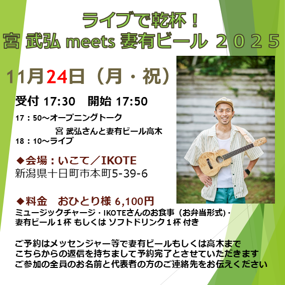■予約:妻有ビールへメッセンジャー等を利用して連絡