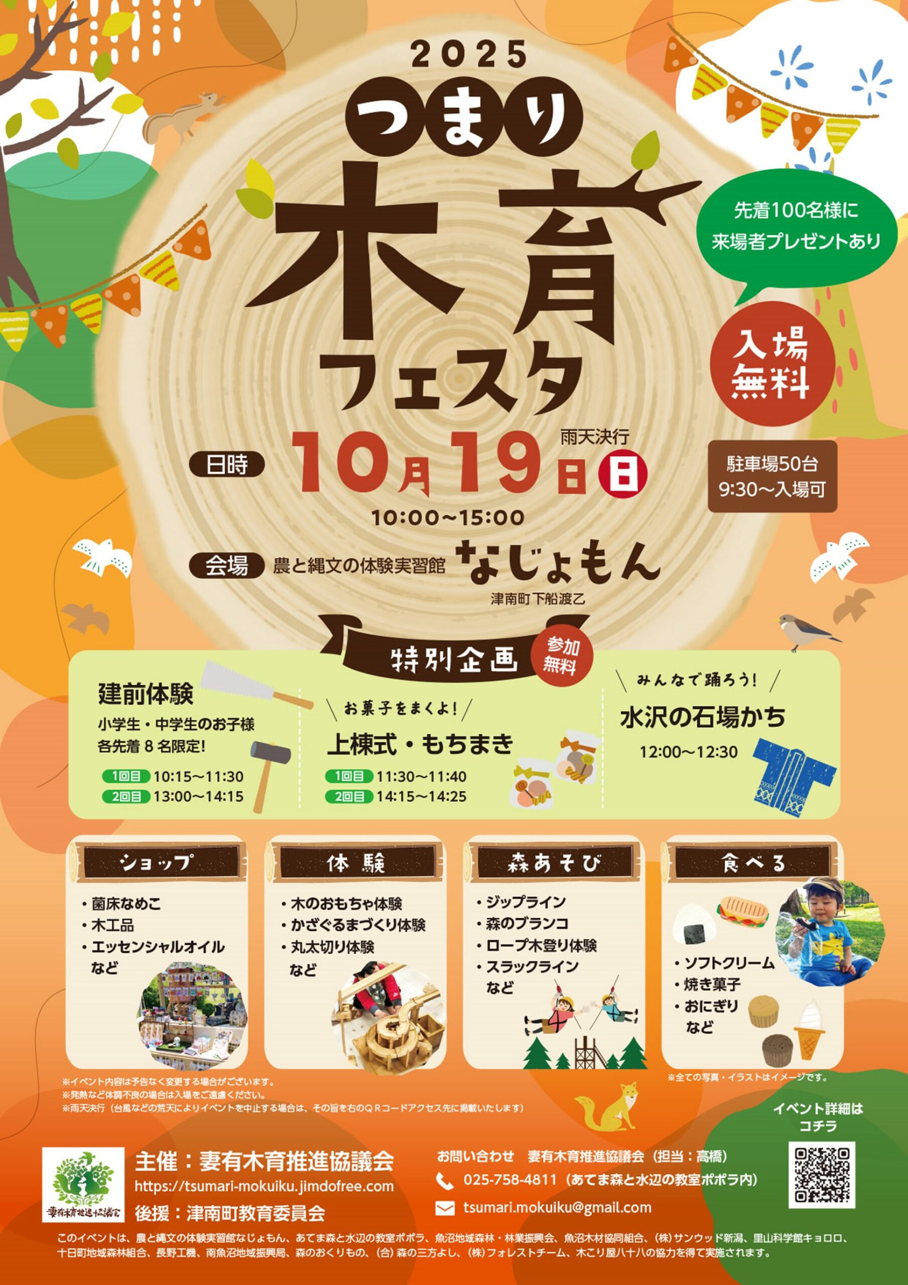 妻有木育推進協議会は、農と縄文の体験実習館なじょもんで「つまり木育フェスタ」を10月19日(日)に開催します。