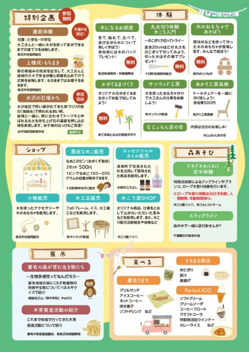 ■内容:建前体験、水沢の石場かち、森あそび体験、飲食ブース 等