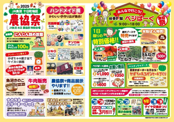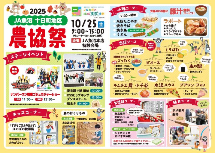 JA魚沼が本店特設会場で「十日町地区農協祭」を10月25日(土)に開催します。