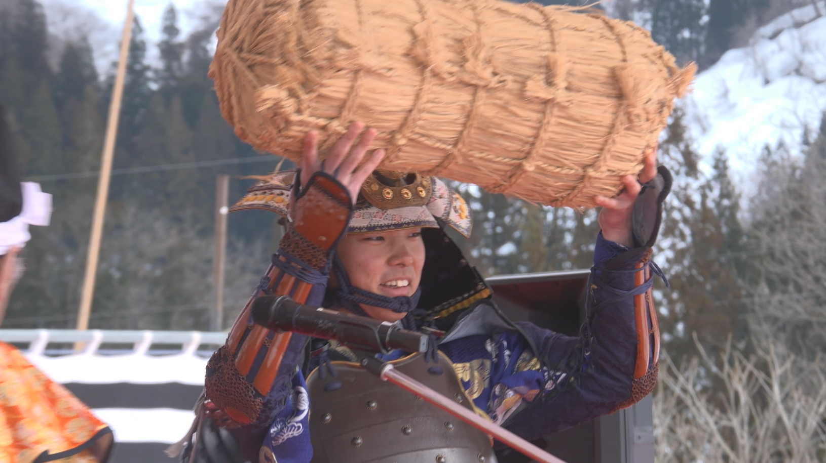 また8日(日)に行われるメインイベント「のっとれ!松代城」は、事前にエントリーした戦士(参加者)が城下町から松代城がある山頂までを目指す雪上レースです。標高差約120m、総延長約3.6kmほどのコースに設けられた雪の障害物(難関)を乗り越えて、見事一番で入城を果たした戦士には、1年間「越後松代城主」に認定されます。昨年に引き続き、ゴール場所は「松代城見張櫓(松代城跡公園管理棟)」となっています。※コースは変更になる場合あり