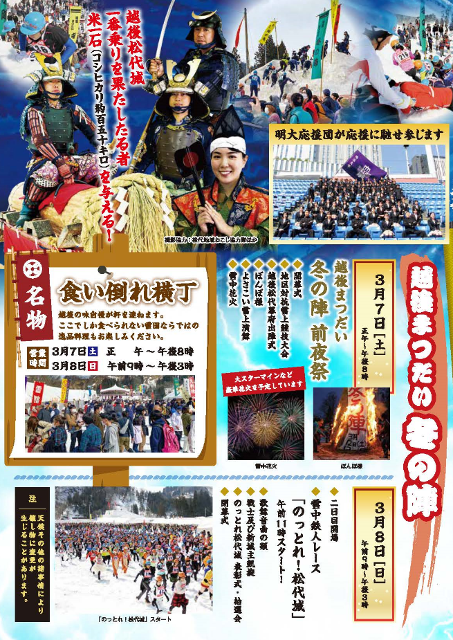 第36回越後まつだい冬の陣が3月7日(土)・8日(日)に松代総合体育館グラウンドで開催されます。