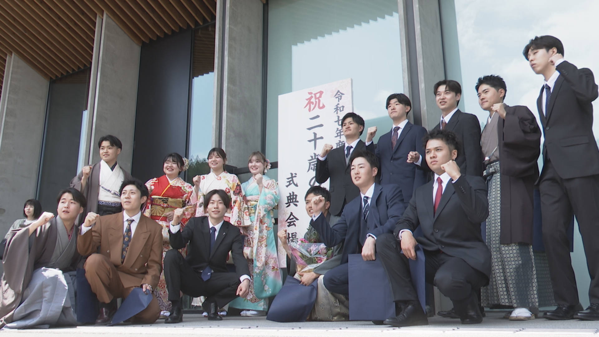 また、きものまつりにあわせて越後妻有文化ホール段十ろうで開かれた「二十歳のつどい」には、平成16年4月2日から平成17年4月1日までに生まれた464人のうち、その8割以上にあたる384人が出席し、友人たちとの再会を喜び合いました。