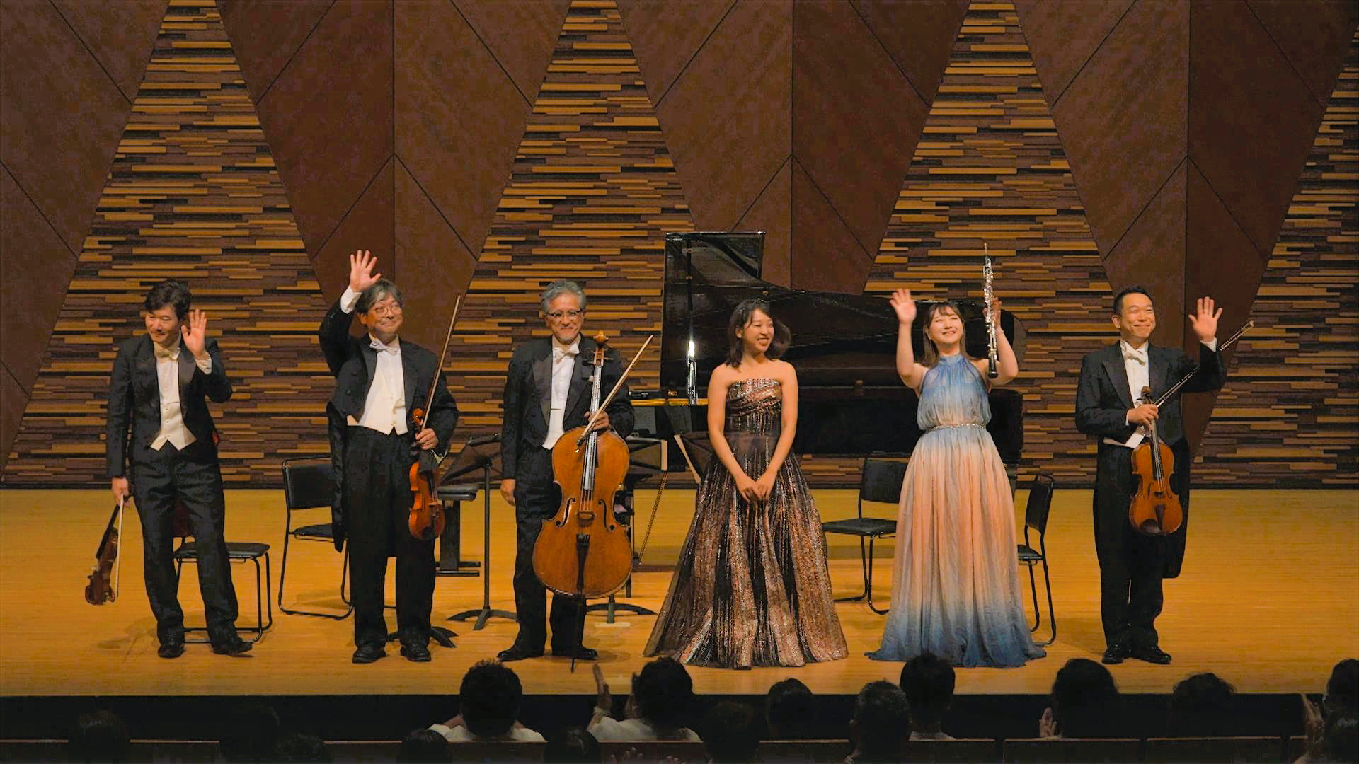 このコンサートは地域への日頃の感謝を込めてJCVが開いたもので、鑑賞には会場がほぼ満席となる約600人が市内外から訪れました。出演したのは、ピアニストの髙橋 希さん、オーボエ奏者の二山 都さんのほか、NHK交響楽団のメンバーを合わせたプロ奏者6人です。