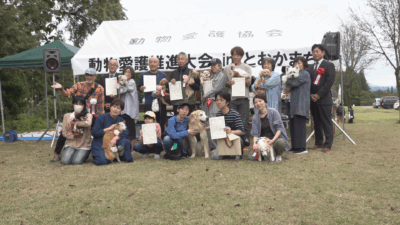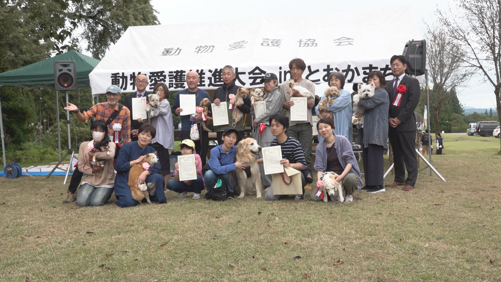 イベントでは動物愛護推進大会も合わせて開かれ、小型犬を15年以上、大型犬を11年以上、ネコを13年以上飼育している飼い主合わせて19人が協会から表彰されました。