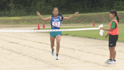 この大会で5連覇がかかっていたのは南中学校です。1区を託されたキャプテン村山椛(3年)がスタートから先頭でレースを引っ張り、2位に20秒以上の差をつけて1位でタスキをつなぎました。