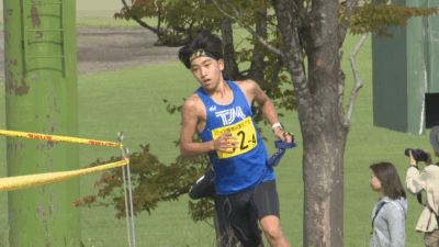 1区の須藤理仁(3年)はスタートから1kmロ付近のカーブでほかの選手との接触し転倒するアクシデントに遭い、すぐに立て直すも区間16位で戻りました。