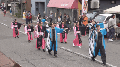 このイベントは、よさこいで地域を盛り上げようと、地元の有志が実行委員会となって毎年開いています。18回目となる今回は日本各地から13団体、約300人が参加し、よさこいを踊りながら松代ほくほく通りの約240mを練り歩きました。
