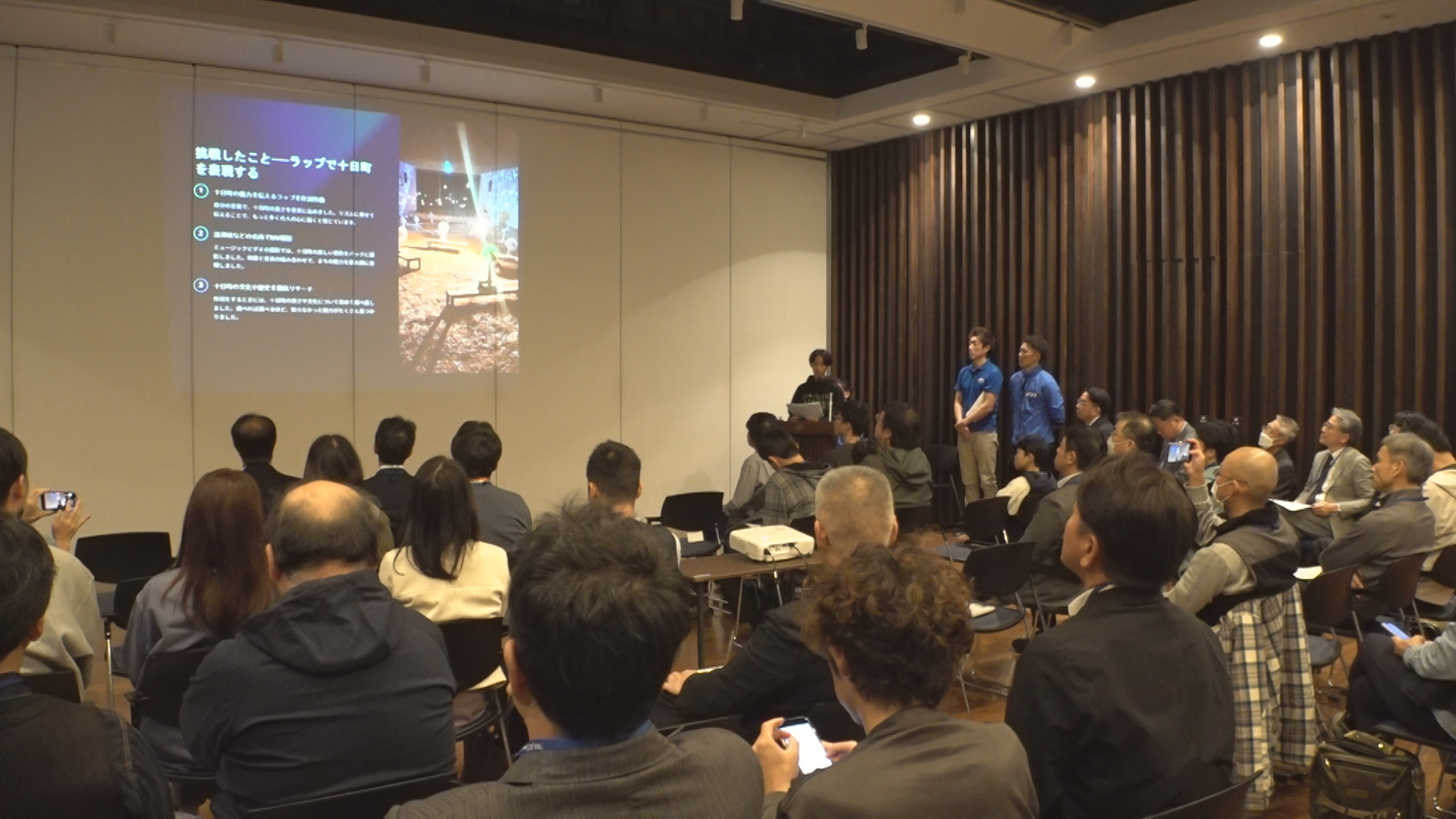 まつのやま学園の志水碧海さんは十日町の魅力を市内外へ広めるため、地元の名所を題材にしたミュージックビデオの作成に取り組みました。発表会では会場に集まった約50人の前で3人が作った模型や動画が披露されました。