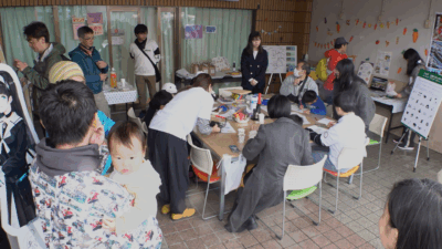 その本番となった今回は、学生が地域の人から聞き取った松之山の生活や農業のエピソードを盛り込んだすごろくや、缶バッチ作りのワークショップなどの催しが用意され、会場に訪れた子どもから大人までを楽しませていました。