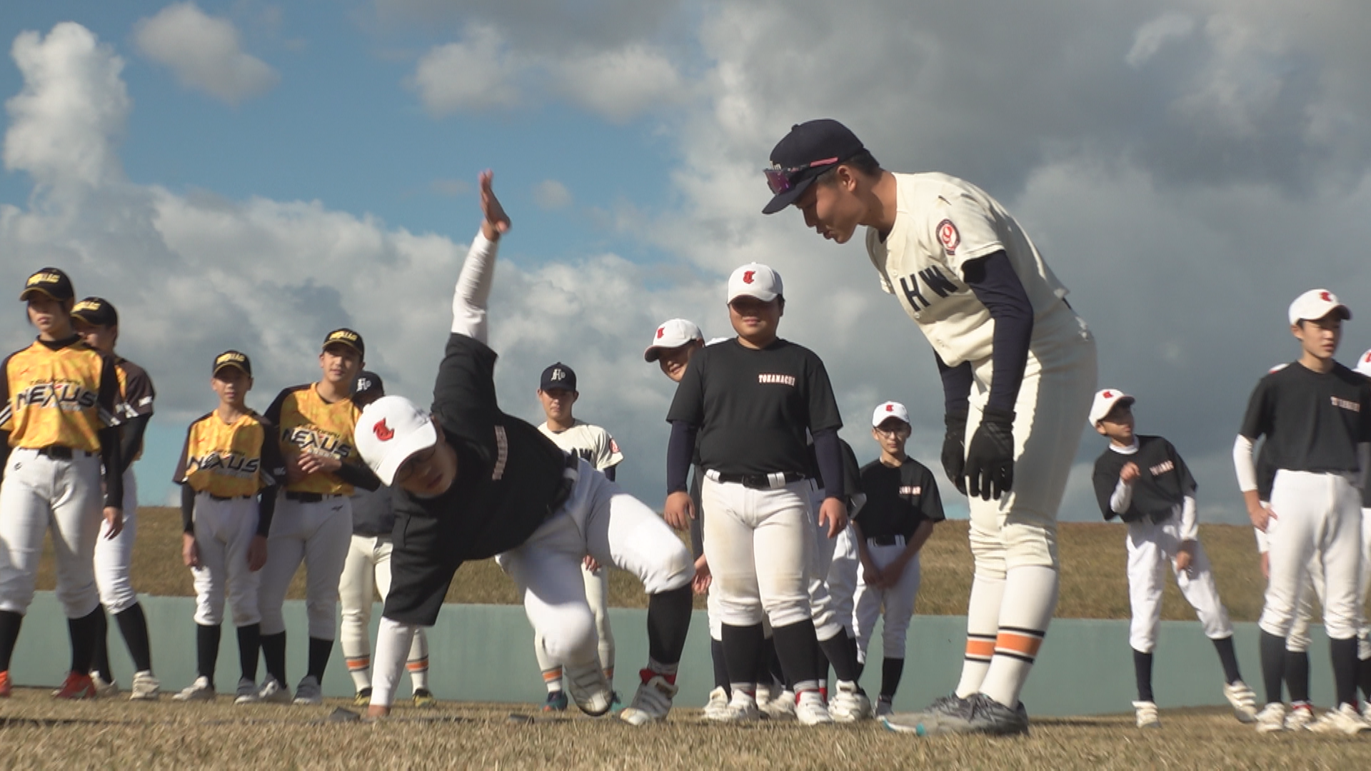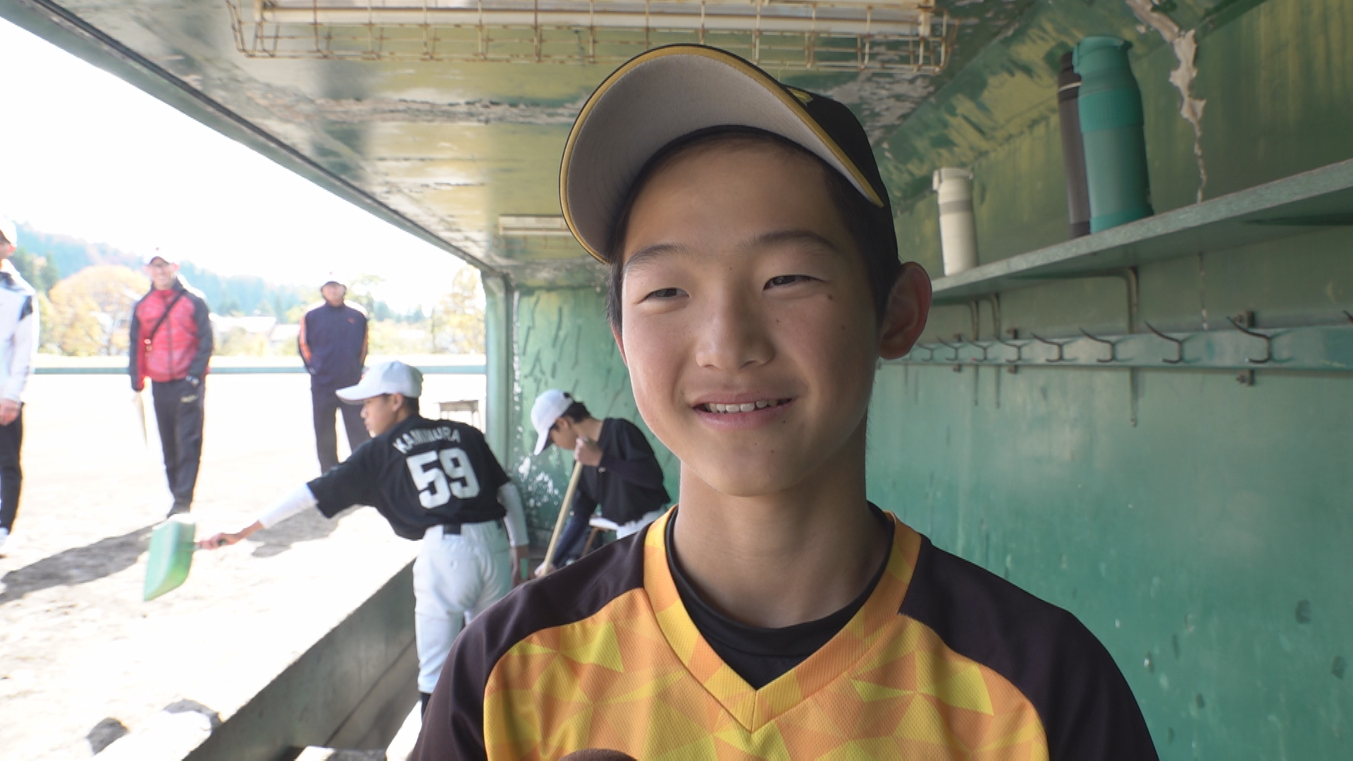 「キャッチャーをやっているが、大学生からキャッチャーのいろいろな知識やステップを教えてもらっていい経験になった。きょう教えてもらったブロッキングやステップの足の動かし方は室内でもできる練習なので、冬の間に室内でやって上手にできるようになりたい」