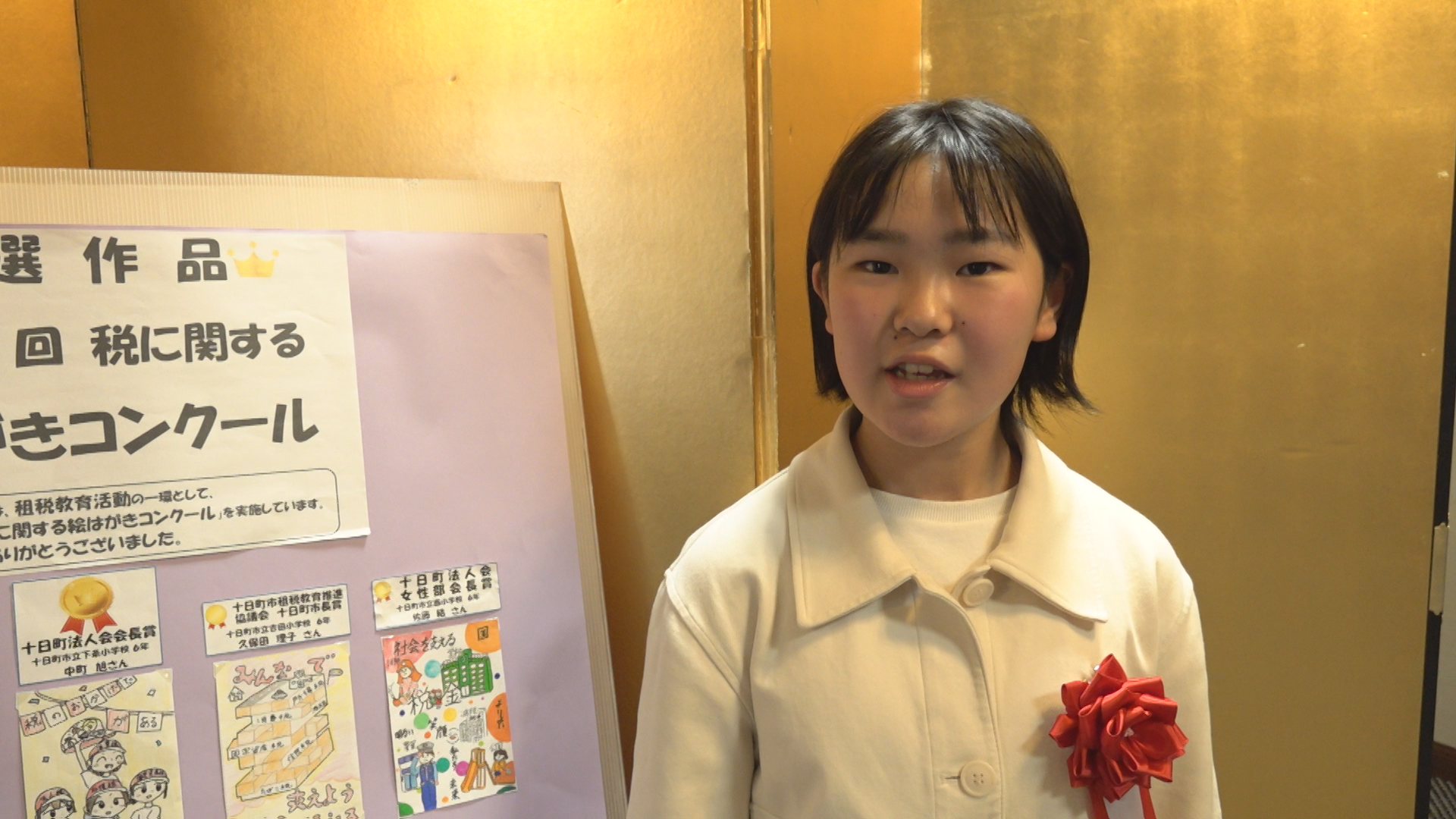 「自分が描いたはがきがこういう賞に入ってうれしい。税金はみんなのために使われているので、もっと税金のことを日本中に知られたらいいと思って描いた」