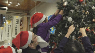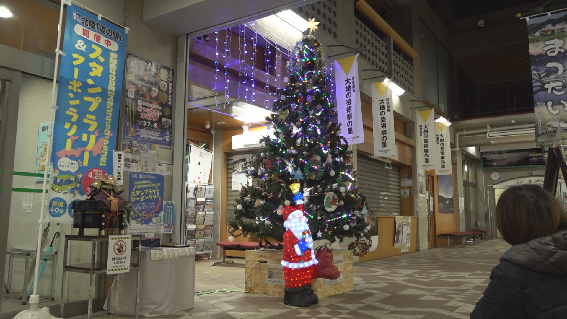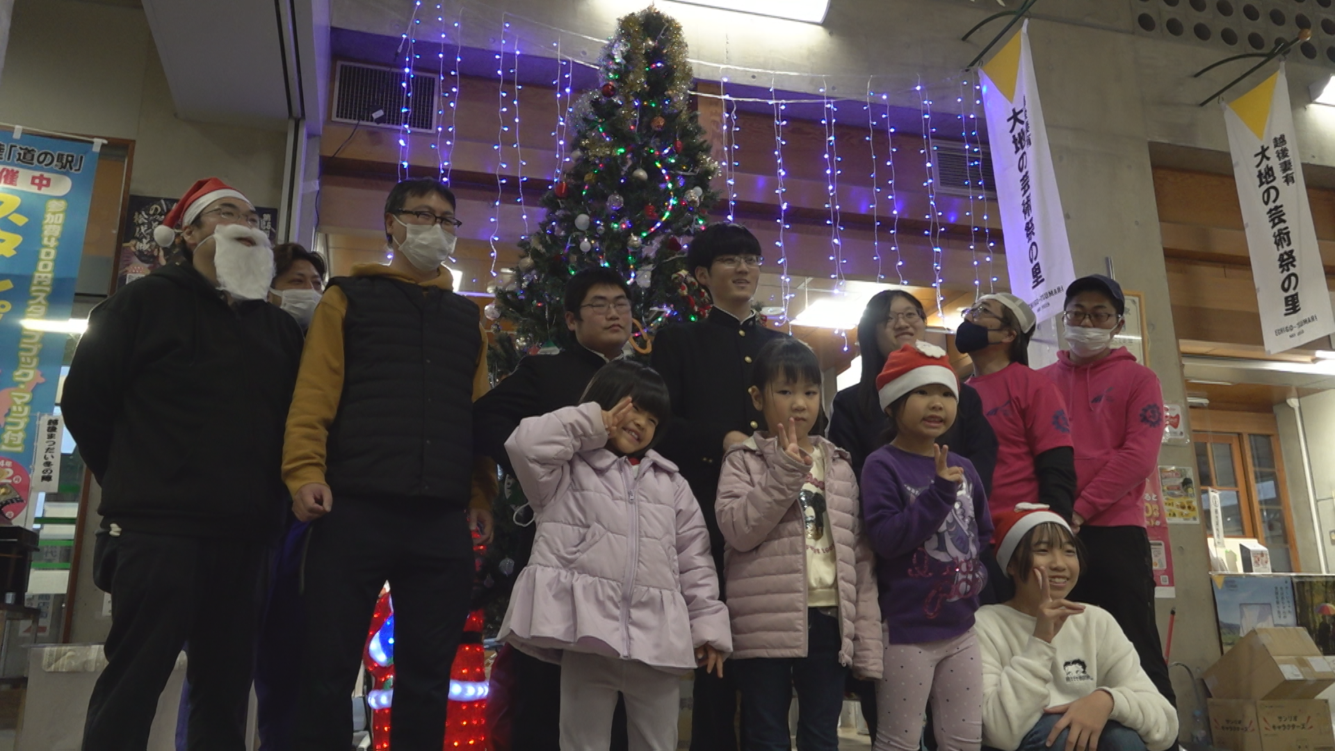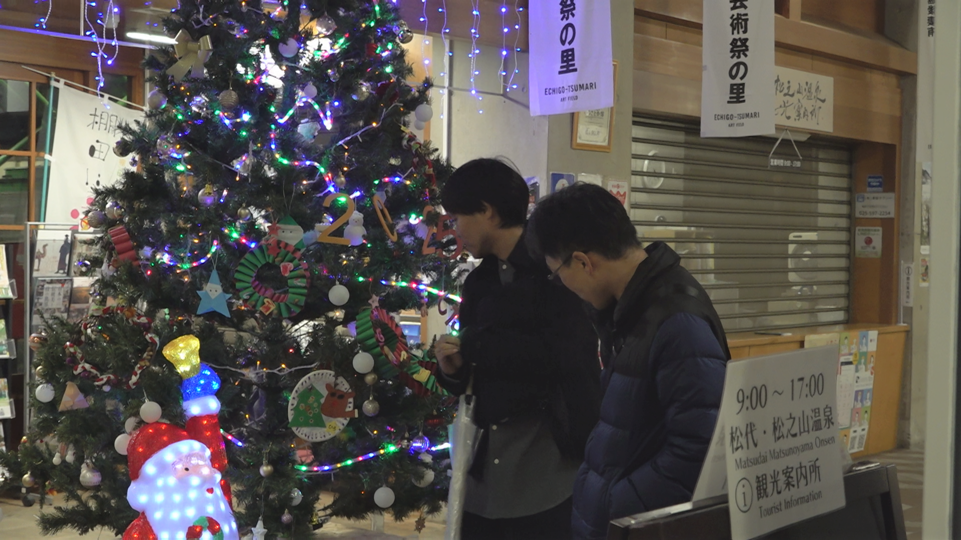 道の駅まつだいふるさと会館に毎年おなじみになっているクリスマスツリーが2日(火)に設置され、地元の高校生や園児が自分たちで作ったリースやオーナメントを飾り付けました。
