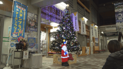 この日は高校生や園児が商工会青年部のメンバーと協力してLEDの電飾やオーナメントを1時間に渡って飾りつけたあと、点灯式が行われました。