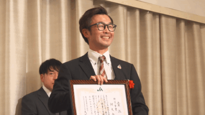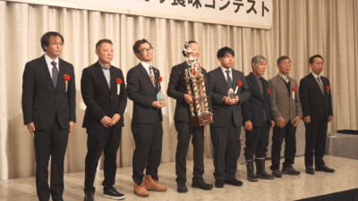 「本当にうれしい。私は2種類出品したが②が受賞した。②は妻が選んだ田んぼで妻が作ったお米。本当はここに立つべきは妻なんです、すみません(笑)地域ではなく農家がそれぞれこだわって工夫して一生懸命作っている。さまざまな課題がある中でみんなに食べてほしくて作っていると思うので、それを評価してもらえてありがたい」