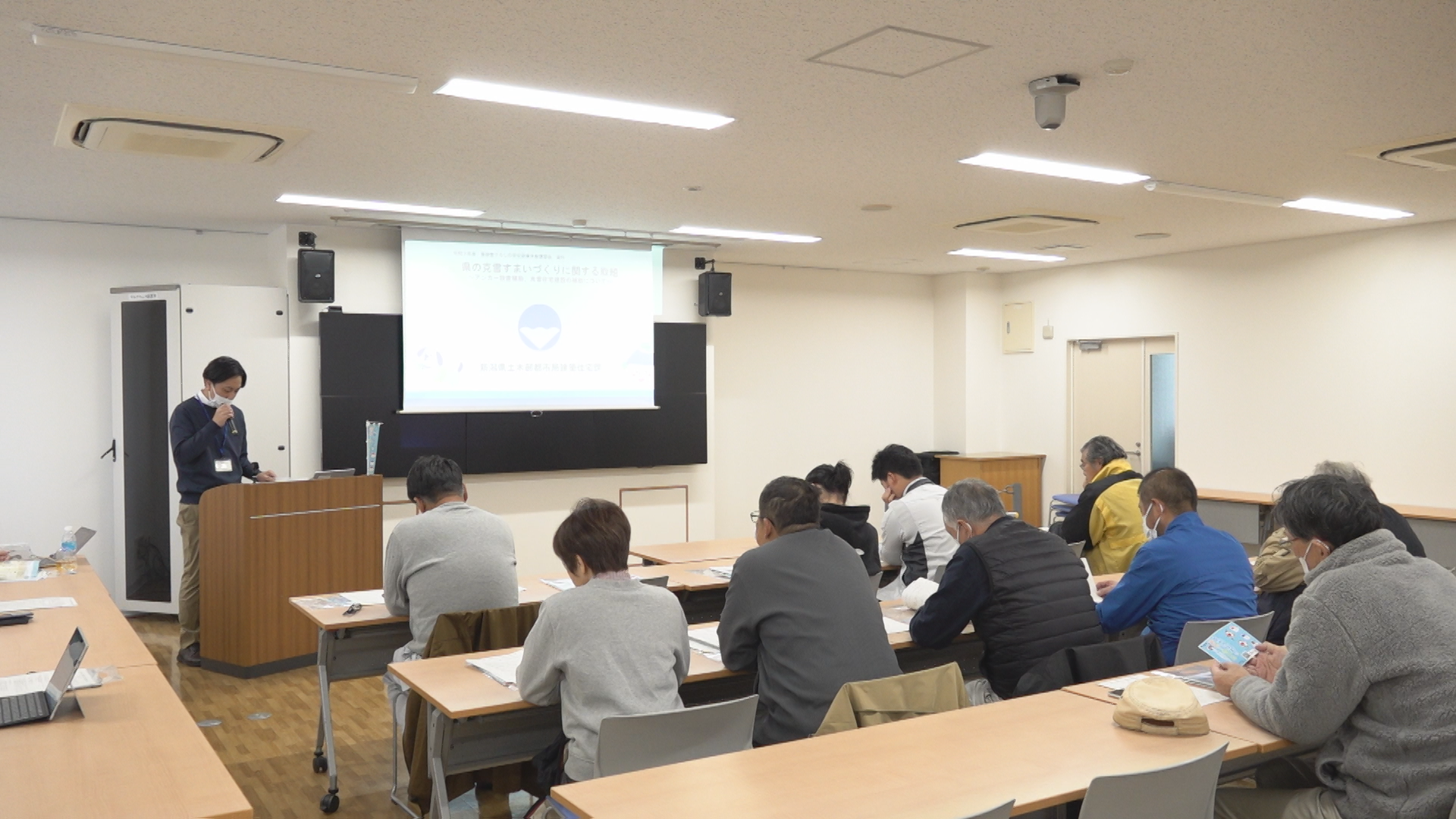 この講習会は屋根雪下ろしの事故を防ごうと、新潟県が豪雪地を中心に各地域で毎年開いています。講師は長岡技術科学大学の上村靖司教授が務め、十日町会場には市内から11人が参加しました。