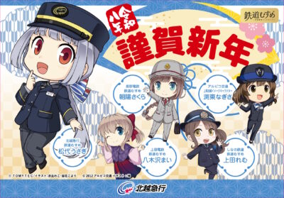 北越急行株式会社は長野県の鉄道事業者4社と連携して、各社の鉄道むすめおよびオリジナルキャラクターをデザインした「謹賀新年ヘッドマーク」を1月1日(木・祝)から鉄道車両に掲出します。