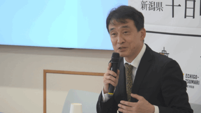 「大地の芸術祭は実行委員会、十日町市、津南町を含めてやっているので、里山協同機構でもらっていいのかというのが最初1番の心配だった。この大地の運動会も、大地の芸術祭の中からでてきたもの。こうゆう形で賞をもらえたのは2つの行政区に感謝しつつうれしく思っている。いつも芸術祭が終わったあとに思うのが『もっと子どもたちに見てもらいたかった』。体験してもらった人は本当に変わるので、できるだけいろいろな人に参加してもらいたい。そのためにやれることはやっていきたい」