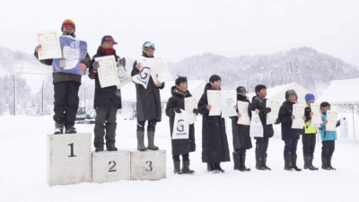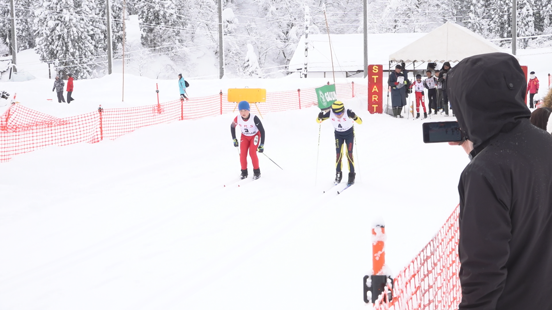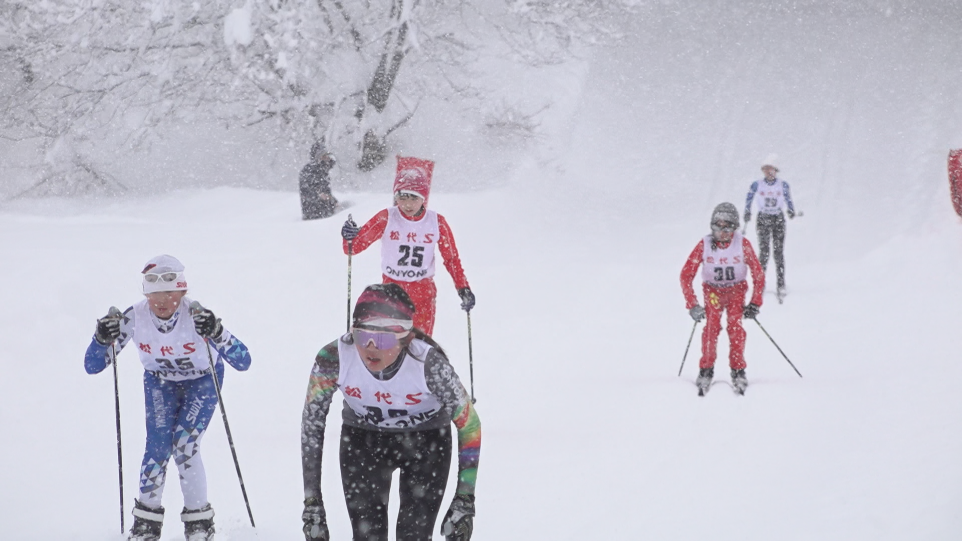 大会には市内外から男女合わせて約80人の小学生が出場し、1-2年生が0.6㎞、3-4年生が1.2㎞、5-6年生が3㎞のコースを滑りました。連日の大雪や当日の降り続ける雪でコースのコンディションが悪い中、選手たちは大会最後の栄冠を目指して雪の上を駆け抜けました。