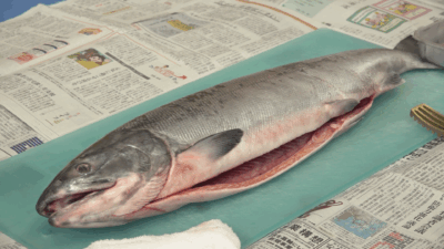 「(サケの解体は)すごい迫力だった」