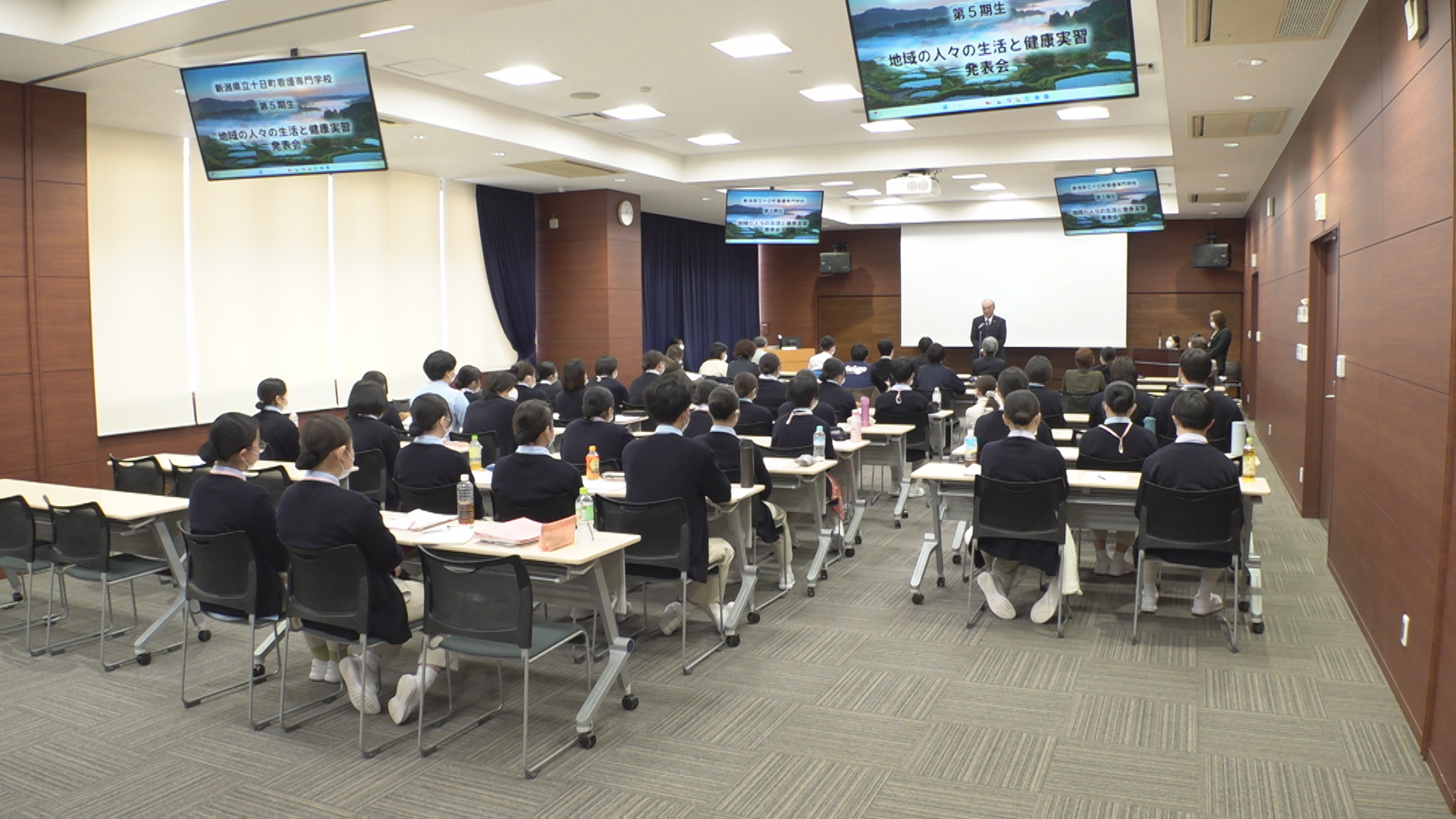 地域で健康的な暮らしを支える「地域包括ケア」のシステムを学び、福祉施設などで体験実習を重ねてきた十日町看護専門学校の2年生の学習成果発表会が3日(火)に開かれました。
