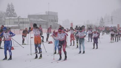 インターハイ最終日はリレー種目が行われ、男子の4×10㎞に全国から25校が出場しました。第1・2走者はクラシカル、第3・4走者はフリーと異なる走法で滑ります。