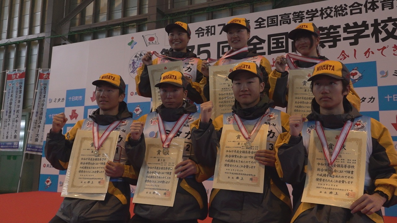 吉田クロスカントリー競技場で開かれた第75回全国高等学校スキー大会(インターハイ)。最終日の8日(日)のリレー種目では、十日町高校男子がライバル校を抑え、地元開催で優勝を飾りました。