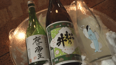「松之山温泉ふぇすてぃBAR」は温泉街を丸ごとBAR見立てて、はしご酒を楽しむイベントです。参加者は温泉街にある12の旅館や飲食店をめぐって、チケット1枚でそれぞれのお店自慢の料理と日本酒の1品1杯を味わうことができます。