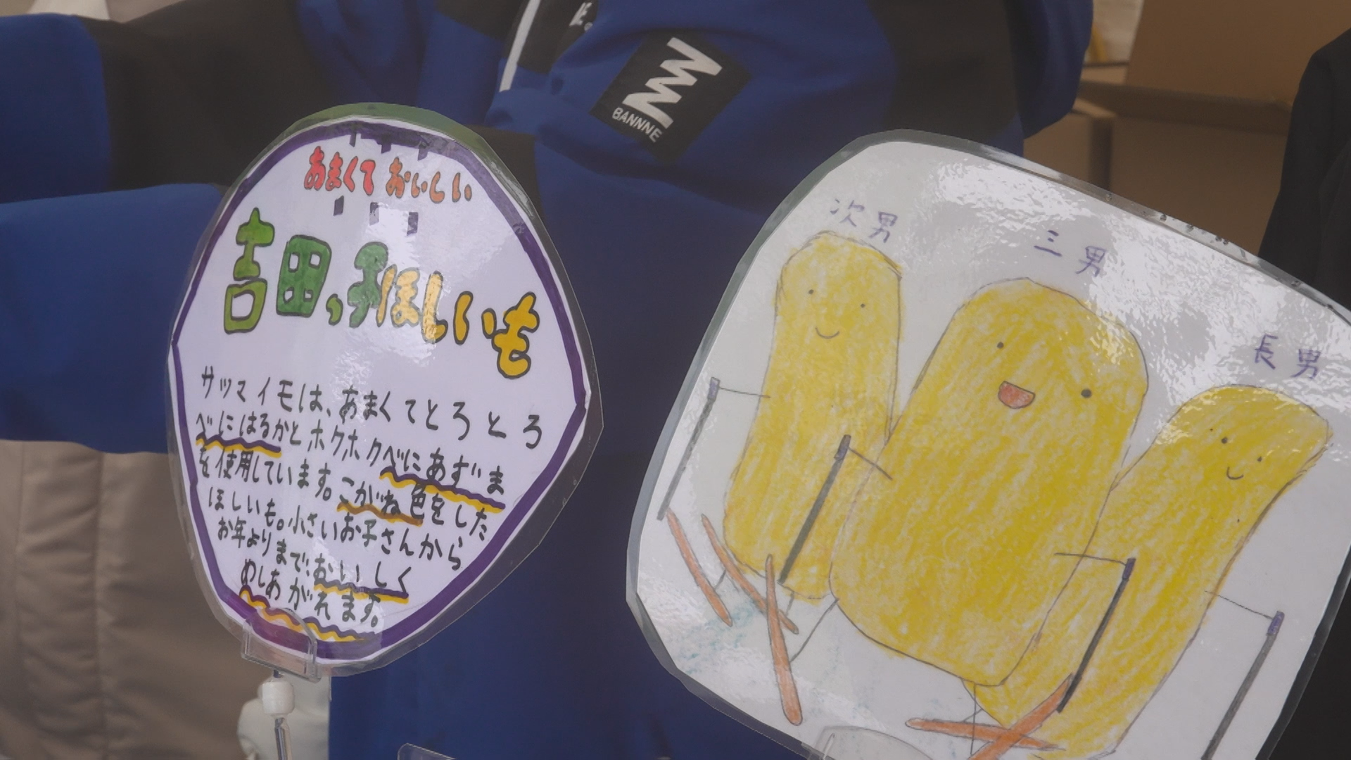 「いろいろな大人たちが協力してくれて、おいしい干しいもが作れたので、みんなが愛情を込めて作ったことをアピールしながら売っている。(ポップを作るときに)キャラクターが1人だと寂しいから、3人描いて賑やかなPOPを作った。売る人の気持ちは分からなかったけど販売してみて、買ってくれる人がいると売る側はうれしいんだと分かった」