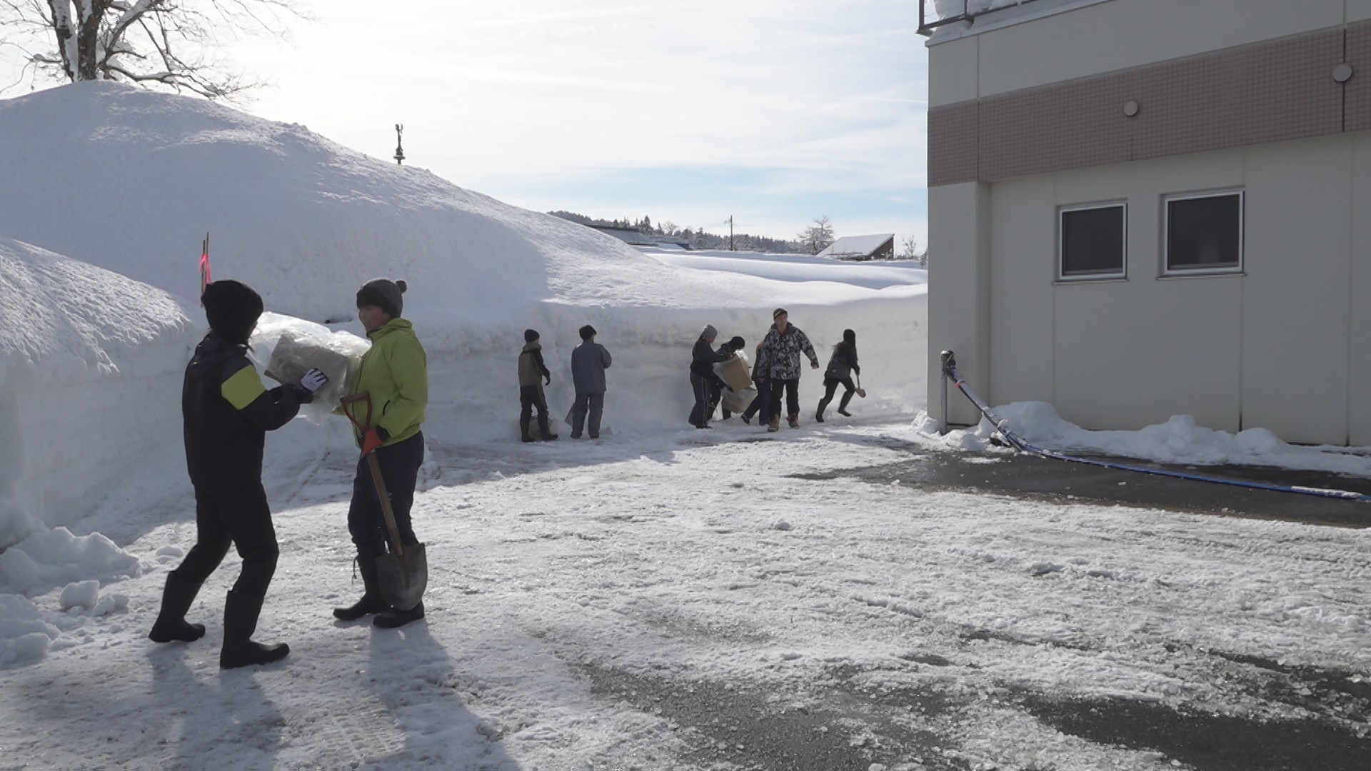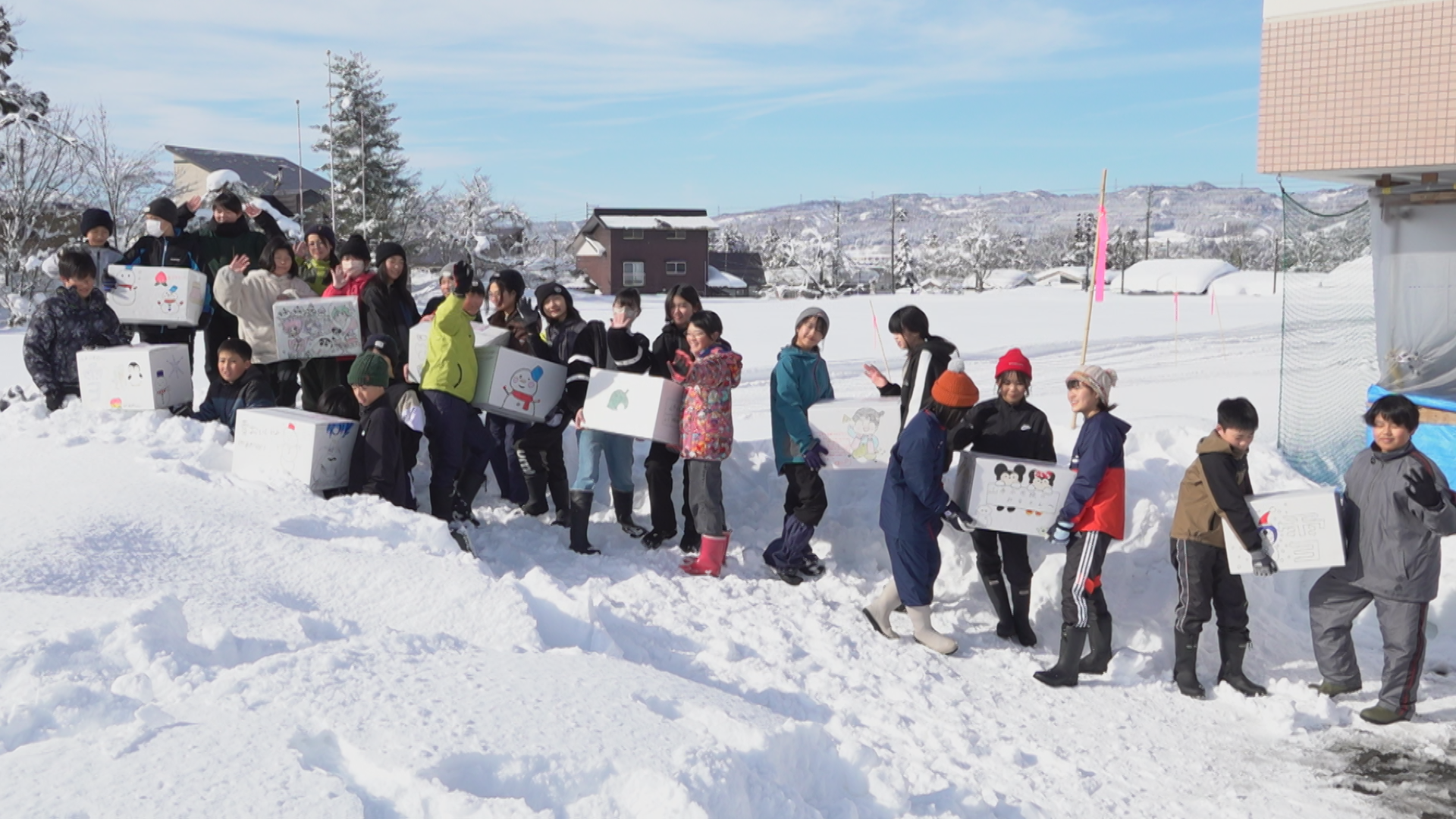 中条小ではこれまでのお礼を兼ねて、オンライン授業のときにこちらの地域を親しく感じてもらおうと、雪を届けることにしました。
