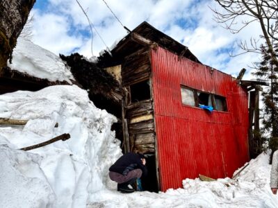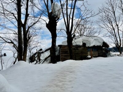 最初に男性の声を聞いた近所の人によりますと、朝、この男性宅の異変に気づき、ほかの近所の人と様子を見に行くと家屋の屋根が崩れていて、家のなかに呼びかけると男性の声がしたということです。この家の男性は一人暮らしで、家屋は茅葺屋根の一部2階建ての木造づくり。数年前から家屋の一部が倒壊し始め、今回崩壊した時には屋根に1ⅿほどの雪があったということです。