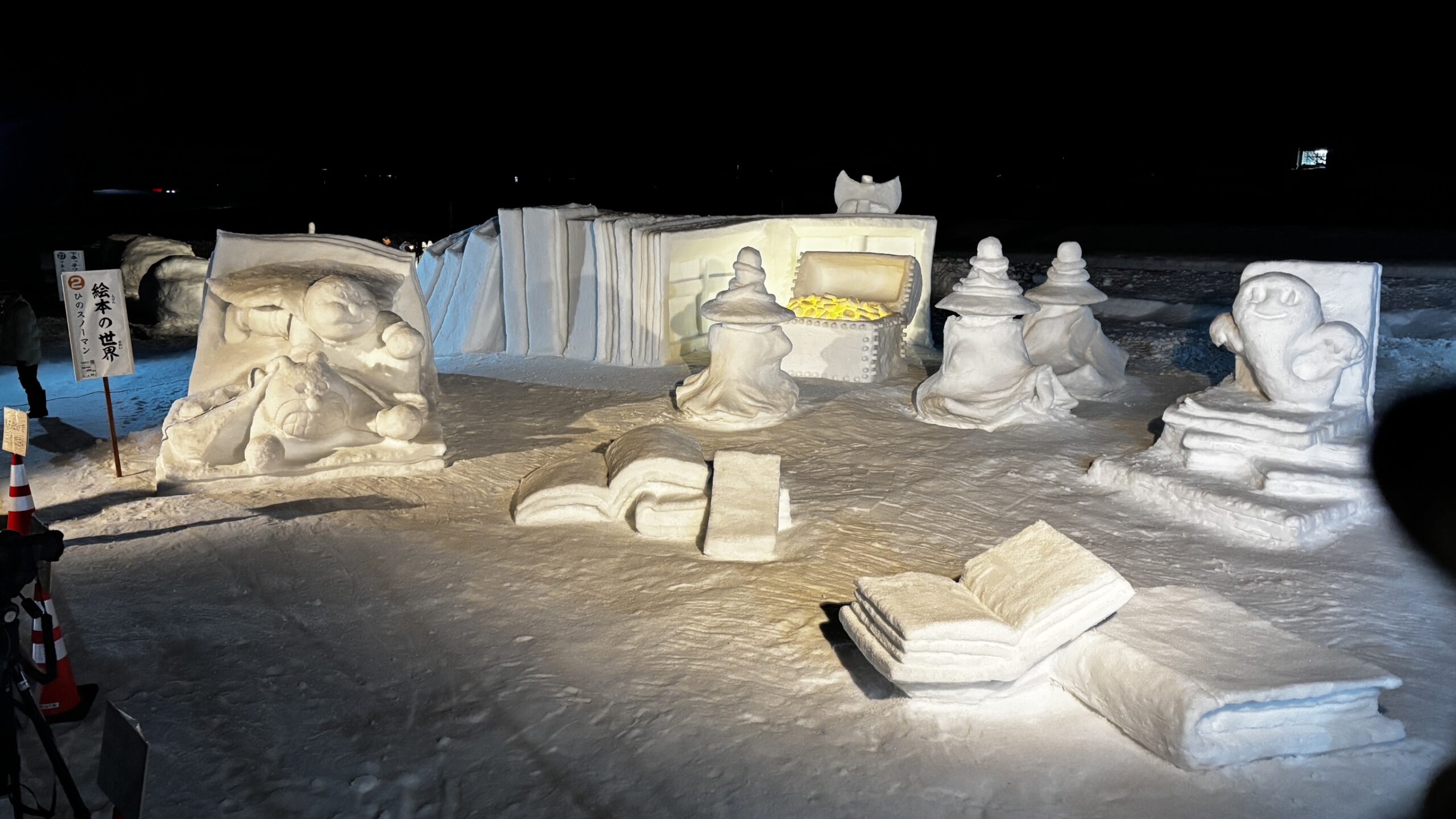 ことしの十日町雪まつりは、会期をこれまでの2日から1日増やした3日間となりました。メインコンテンツとなる市民手作りの「雪の芸術展」芸術部門には17団体がエントリーし、干支の「午」にちなんだ作品や物語をテーマにした作品、アニメやゲームから着想を得た作品など力作が集いました。
