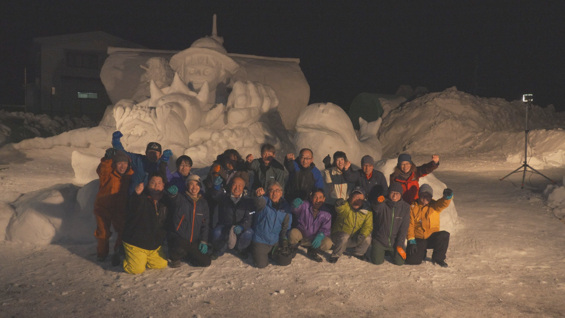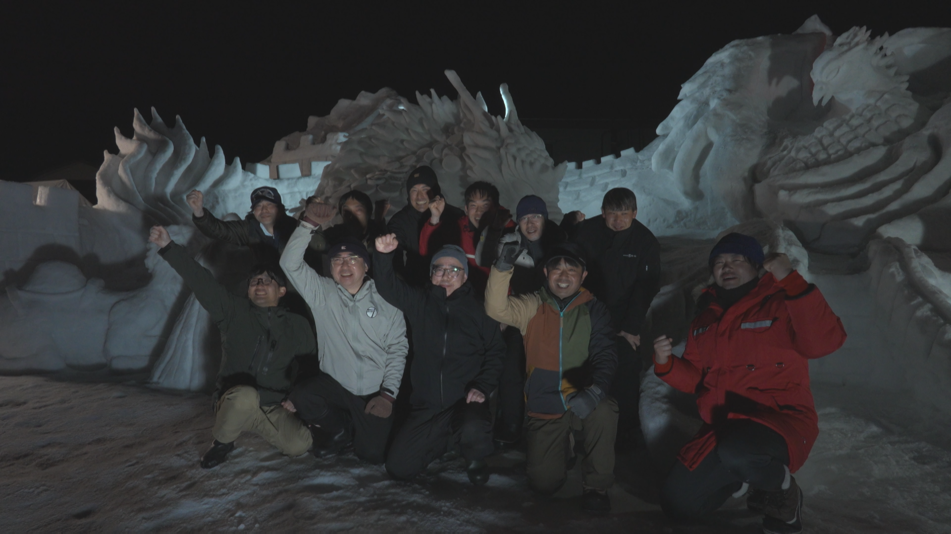 「信じられない、今日の昼までは無理だと思っていた。1月の大雪から始まって、制作期間は心が折れそうになったこともあった。今までは市長賞は手の届かないものだと思っていたが、2年連続で受賞できて『継続は力なり』だと思う。見に来てくれた人が作品にふれ合って、作品の中に入って、思い出を持って帰ってもらいたいと毎年作っている。雪像を通して地域を盛り上げたいという気持ちで、みんながひとつになっている。来年も頑張ります!」
