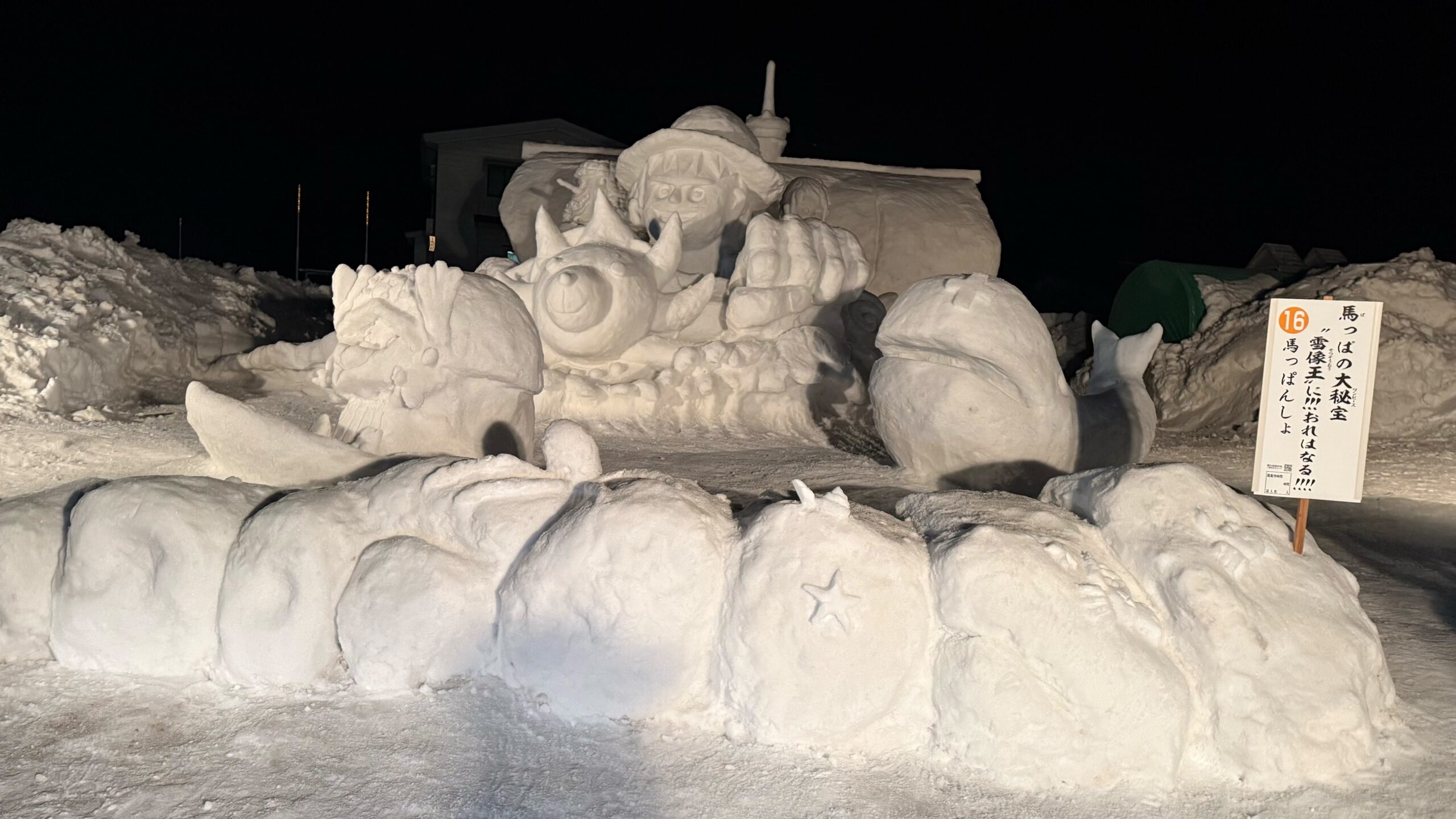 また市長賞には人気漫画ONE PIECEの世界を取り入れた、馬っぱんしょの「馬っぱの大秘宝〝雪像王〟に!!!おれはなる!!!!」が選ばれました。こちらも去年に続き、連続の市長賞受賞となりました。