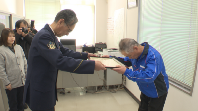 1月末に中里地区の通り山地内で除雪中に誤って用水路に転落した女性を救助した南魚沼市に住む運送業の男性に20日(金)、十日町警察署から感謝状が贈られました。