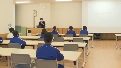来年迎える創立60周年に合わせて、十日町市立南中学校の1年生が地元の食文化であるへぎソバについて学び、地元の玉垣製麺所と協力してオリジナル麺の新規開発や販売を目指すプロジェクトが始まりました。ソバのつなぎの勉強や目指す麺の食感を確かめあう特別授業が27日(木)に行われました。