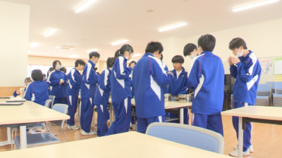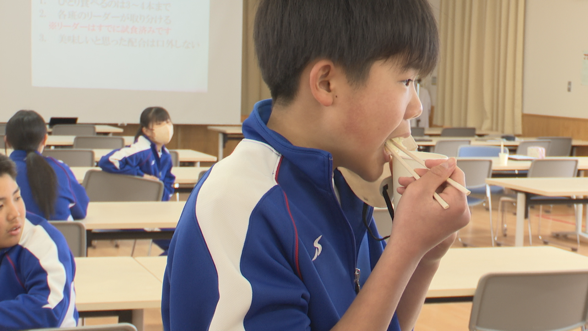 今回の試食をもとに、クラスごとに最も評価の高かった配合のソバが玉垣製麺所で商品化されます。その間に生徒たちは新商品のネーミングやパッケージのデザイン、販売価格を決めるなどの作業を行い、まずは4月のPTA総会で生徒たちが保護者に向けて販売します。そこで購入した人から食味やパッケージなどアンケートに答えてもらい、それをもとに商品改良を加えてから令和9年に開かれる学校の創立記念式典や修学旅行先で本格販売を目指します。