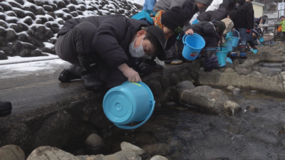 中魚沼漁協によりますと、宮中取水ダムのサケの遡上調査は去年秋で18匹にとどまり、一昨年の44匹からさらに減少しました。去年は村上市の三面川から受精卵を譲り受けてふ化事業にこぎつけましたが、今シーズンは18匹のうち4匹がメスだったこともあり、中魚沼漁協だけで7500個の受精卵をふ化することができたということです。さらに今回は隣の魚沼漁協からも稚魚を譲り受け、合わせて約2万5千匹の稚魚が放流できました。