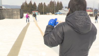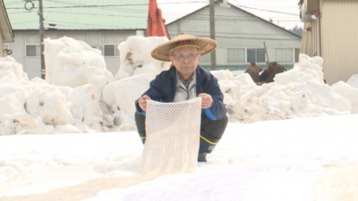 織りあげた布を漂白し、美しく仕上げる雪国の伝統技法「雪さらし」を着物のクリーニングや染色加工を手掛ける十日町市の株式会社シルクワークが13日(金)に披露しました。