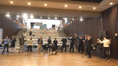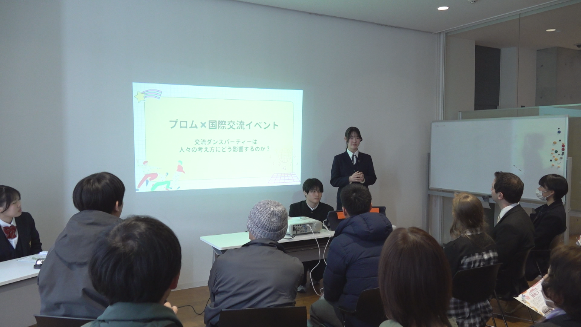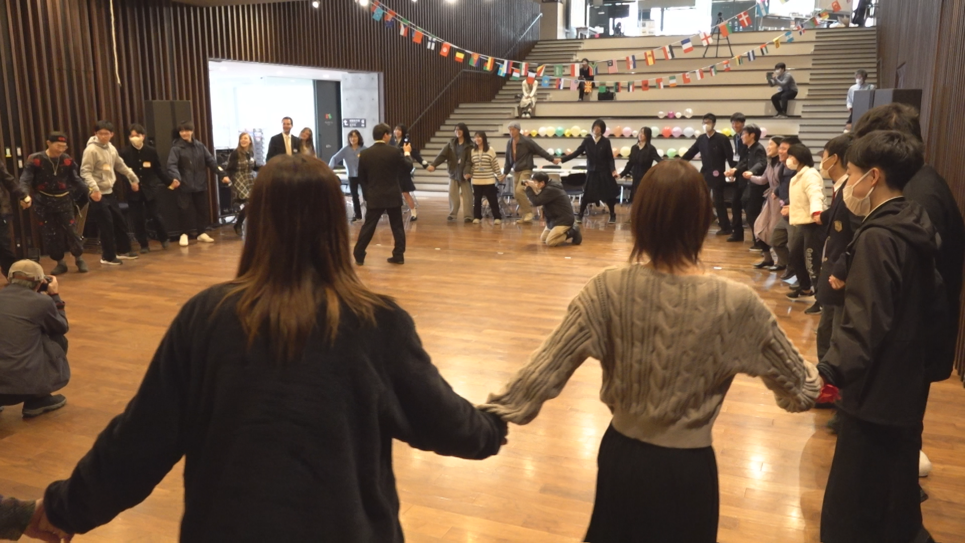また、発表会のあとには十日町高校2年生の企画として、欧米の学校などで行われるダンスパーティー「プロム」が催されました。これは地元の大人や異なる文化を持つ人と交流を増やしたいと企画されたもので、参加者たちは互いに手をつないで大きな円をつくり、高校生が考えた振付のダンスを楽しみました。