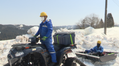 東北電力ネットワーク 雪国の冬は雪上バギーで配電設備の点検