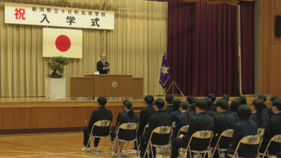 十日町高校に入学したのは全日制198人、定時制7人の合わせて205人です。今年度新たに設けられた学科「クロス探究科」には、1クラス40人の募集に対して38人が第1期生として入学しました。